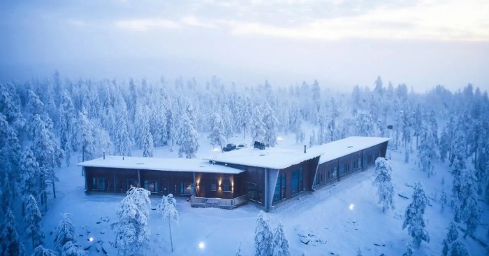 The lodge combines traditional Finnish design with modern amenities, creating a cozy yet sophisticated atmosphere. Guests can enjoy activities such as husky sledding, snowmobiling, and Northern Lights hunting, making it a perfect destination for nature lovers and adventure enthusiasts.